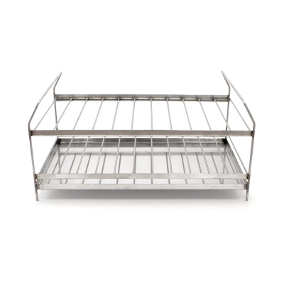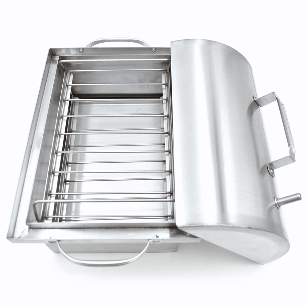 Две съёмные решётки для копчения и поддон для сбора жира с ручками для удобства закладки и извлечения продуктов. Решётки и поддон выполнены из нержавеющей стали.