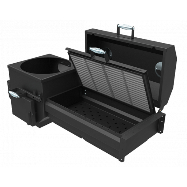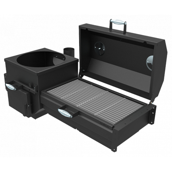 Интенсивность горения углей и температура под крышкой регулируется открытием-закрытием зольных ящиков, а также открытием-закрытием вентиляционных заслонок на крышке.