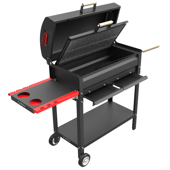 Привычный мангал «Редлайнер Комфорт Эйр» можно функционально расширить до полноценного угольного гриля – для этого мангал снабжается крышкой-гриль с решеткой из чугуна или нержавеющей стали. Таким образом, на одном устройстве можно готовить популярные и любимые всеми шашлыки на шампурах, а также жарить стейки или бифштексы. Также можно запекать большие куски мяса или птицу целиком, а при желании можно получать и копчёные деликатесы.
