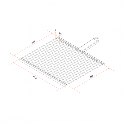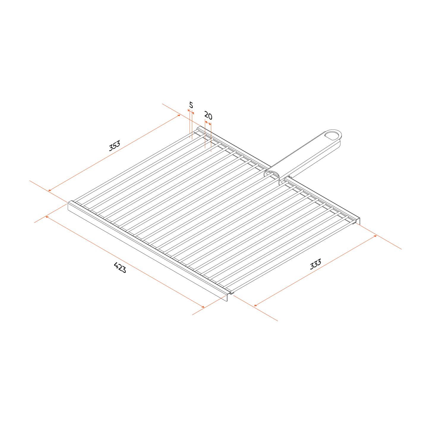 Спроектирована специально для мангалов Gratar. Изготовлена из пищевой нержавеющей стали. Долговечная и легко моется. Занимает половину топки мангалов с шириной рабочей зоны 85 см.