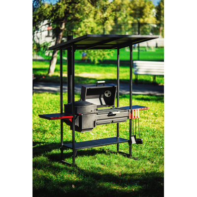 - Два боковых столика, прикрепленных к стойкам навеса;