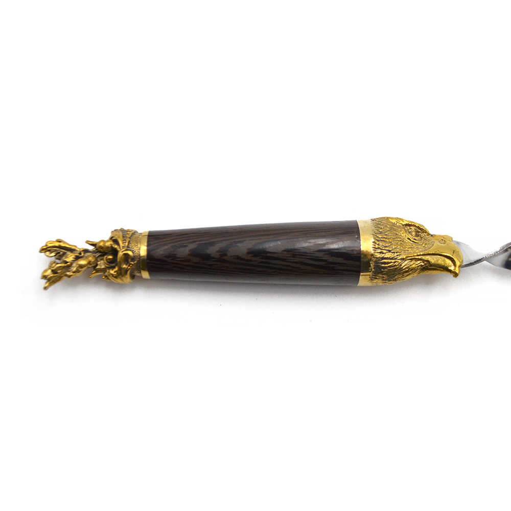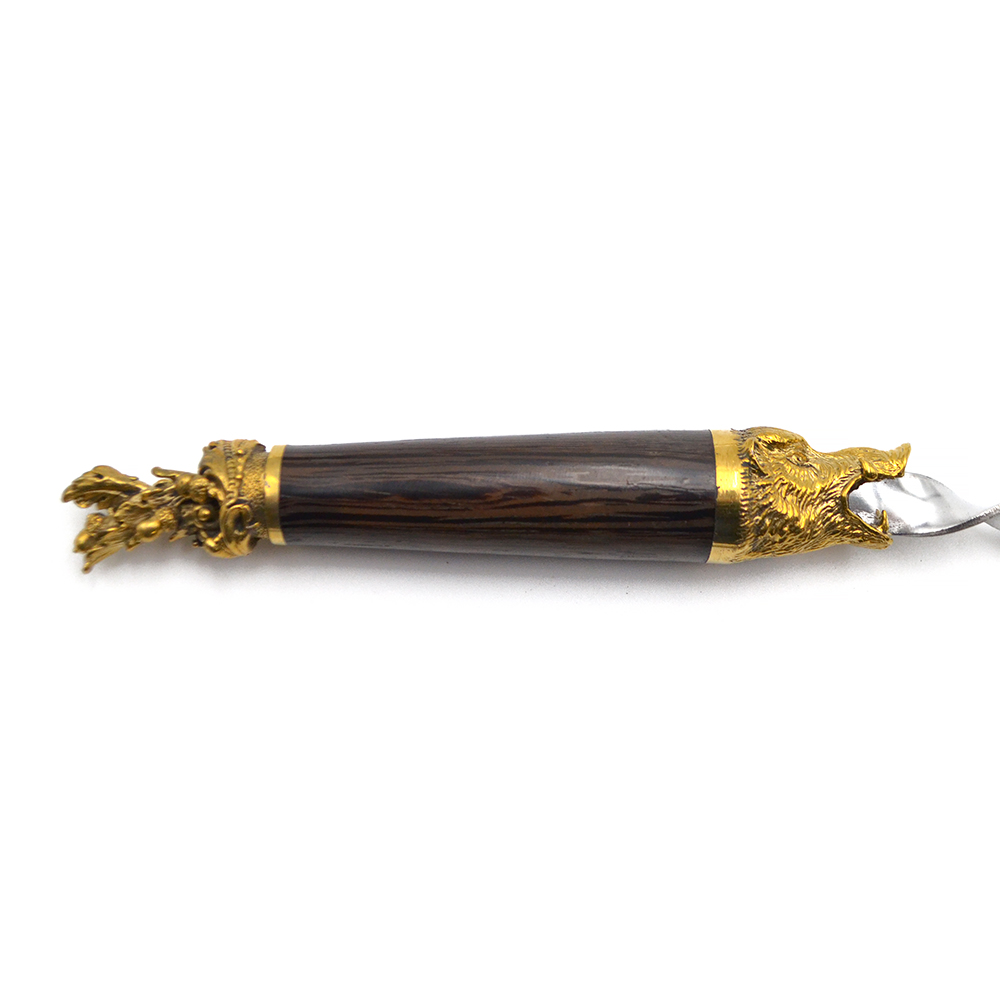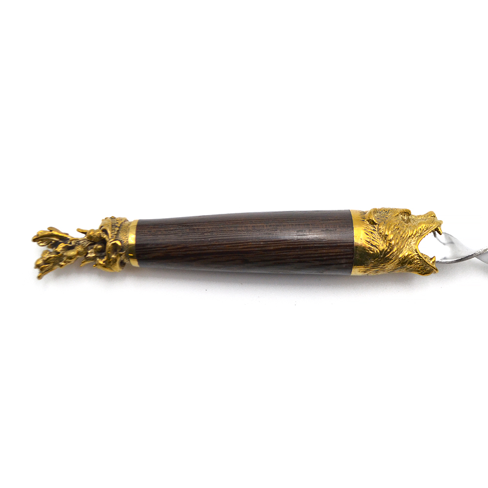 Ручки выполнены из дерева венге и художественного латунного литья в виде голов диких животных.