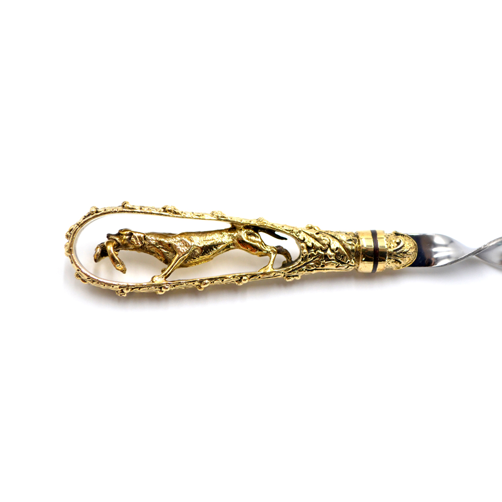Ручки выполнены из художественного латунного литья в виде имитации охоты на утку.
