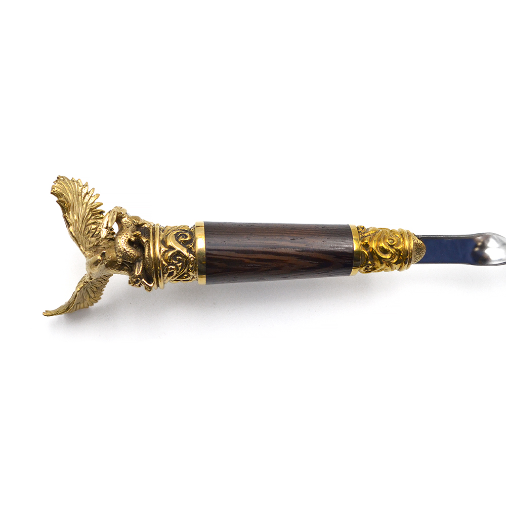 Ручки выполнены из дерева венге и художественного латунного литья в виде имитации орлиной охоты.