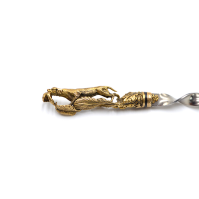 Ручки выполнены из художественного латунного литья в виде имитации псовой охоты.