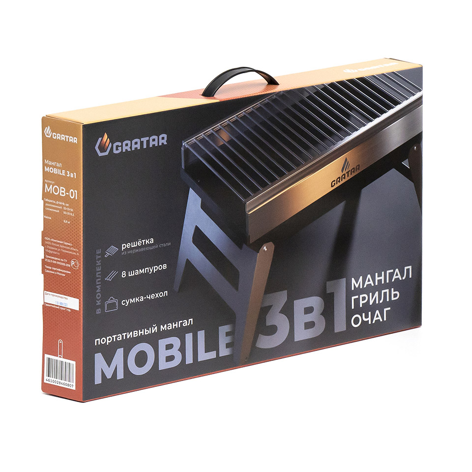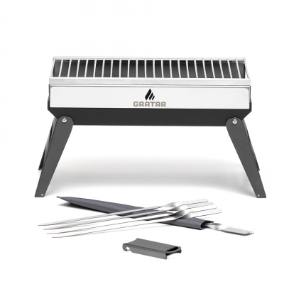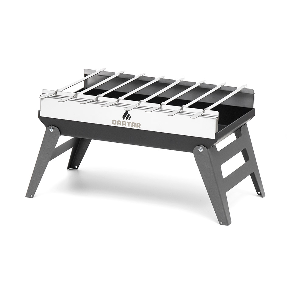 Походное решение, полностью укомплектованное и не требующее дополнительных аксессуаров. В комплекте 8 шампуров из нержавеющей стали, большая решётка и удобный текстильный чехол. Модель можно использовать как очаг, мангал или гриль.