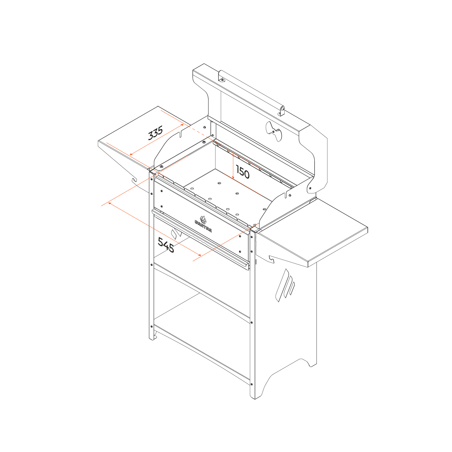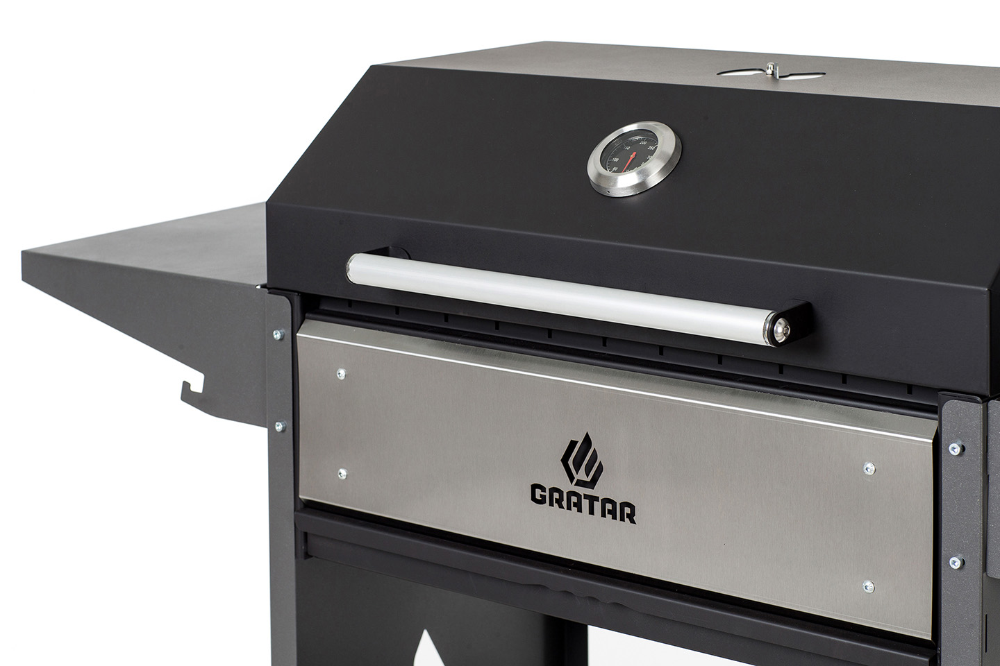 Отличный гриль-мангал для семейных посиделок. Топка с декоративной накладкой из нержавеющей стали и выдвижным зольником для регулировки интенсивности жара.