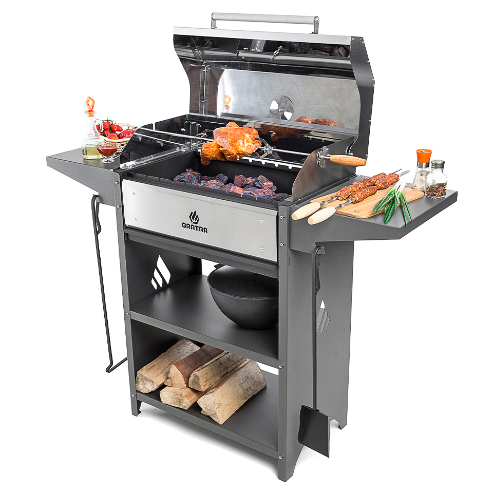 Гриль-мангал с крышкой Gratar M Family Optima BBQn, нержавеющая сталь