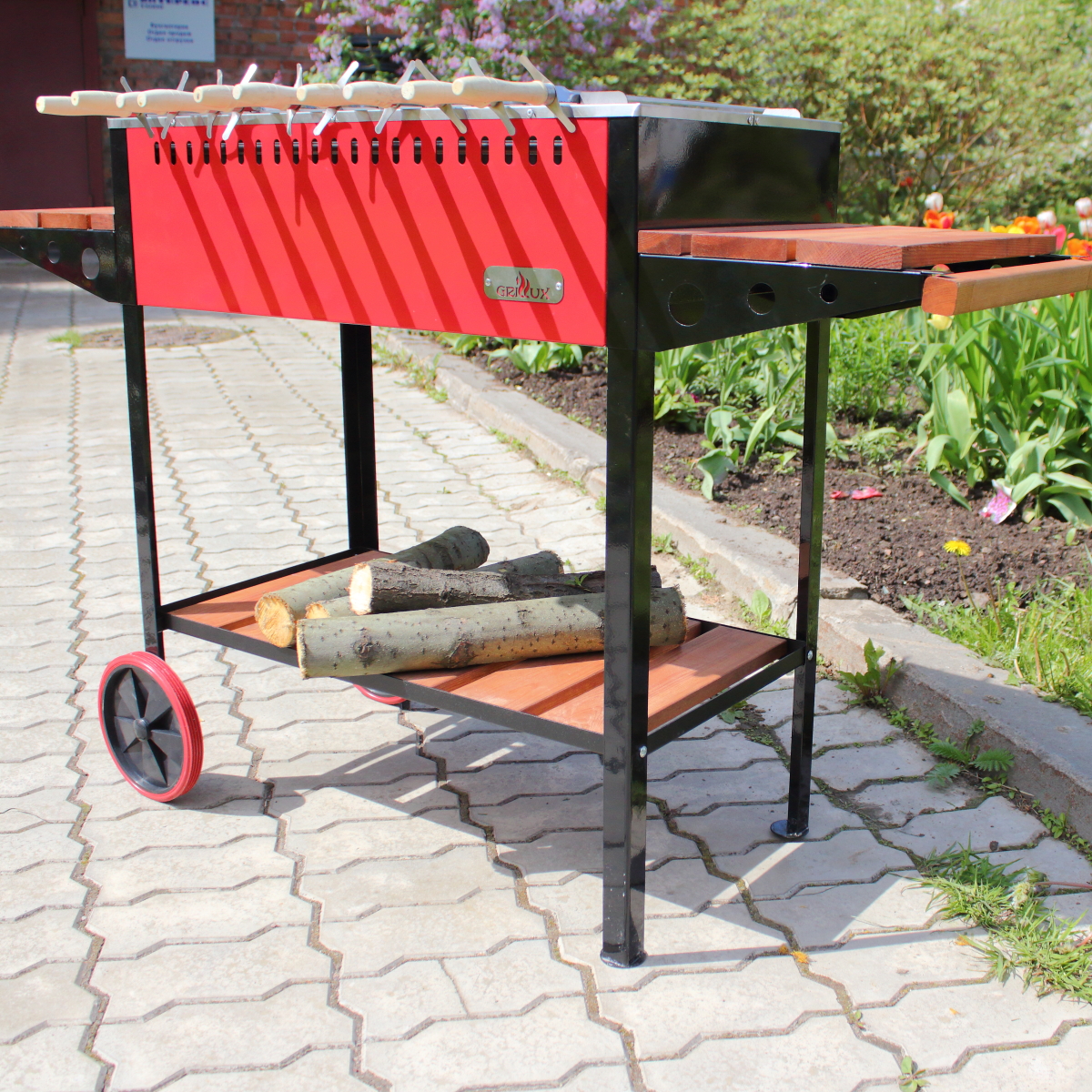 Мангал Grillux Master — это достаточно большое и удобное устройство для приготовления вкуснейших блюд из любимых продуктов на открытом воздухе. Предусмотренные колеса позволяют быстро и легко перемещать устройство на оптимально подходящее место для полноценного отдыха с кампанией друзей или родственников. Мангал изготавливается из качественной стали, покрашенной для более привлекательного вида. В конструкции имеются удобные и функциональные столики, отделанные прочной древесиной, способные выдержать вес приготовленных продуктов, кухонной утвари и других необходимых вещей.