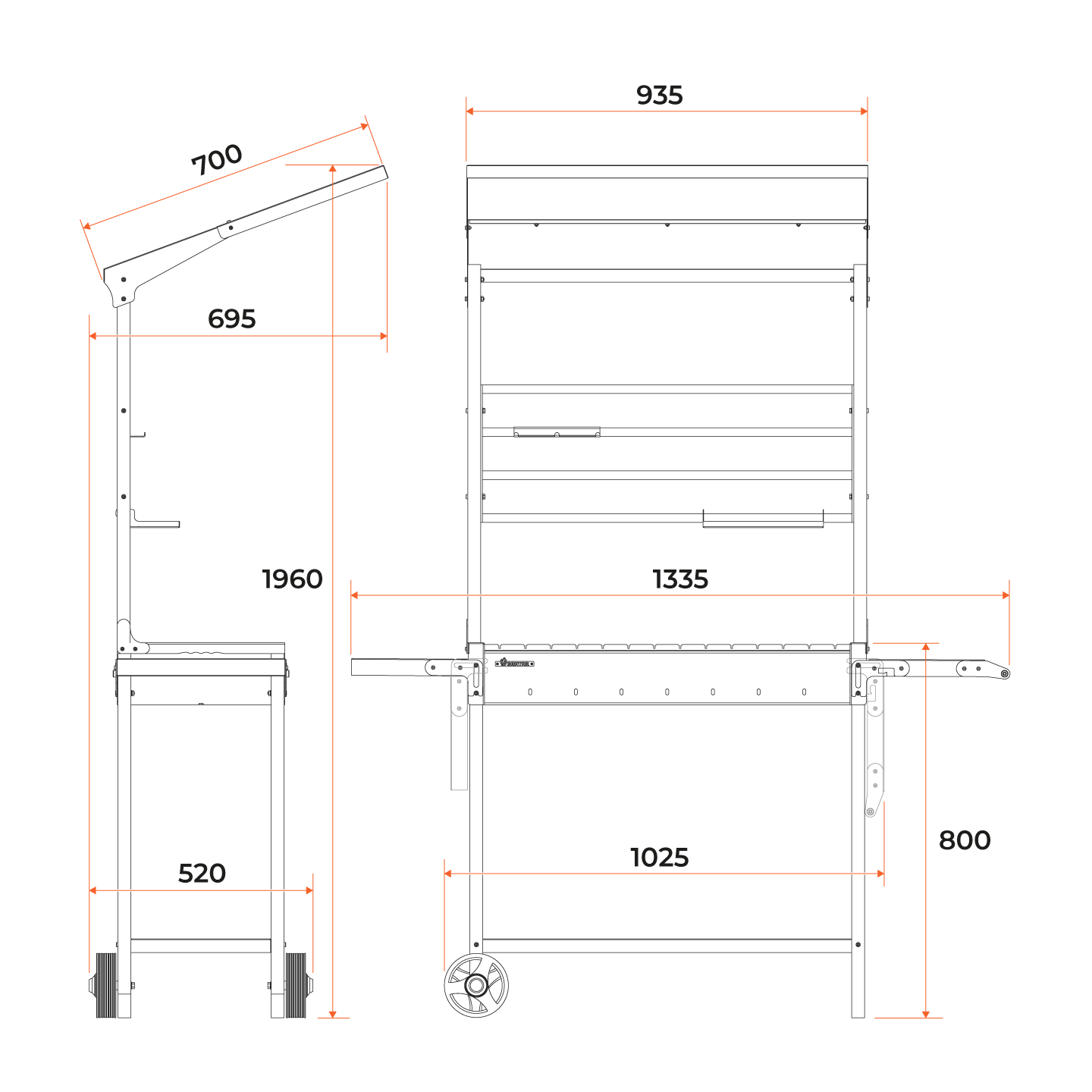 Настоящее кухонное пространство в компактной упаковке. Вместительный гриль-мангал из толстой стали для тех, кто хочет, чтобы продукты, приправы и кухонные инструменты всегда были под рукой.