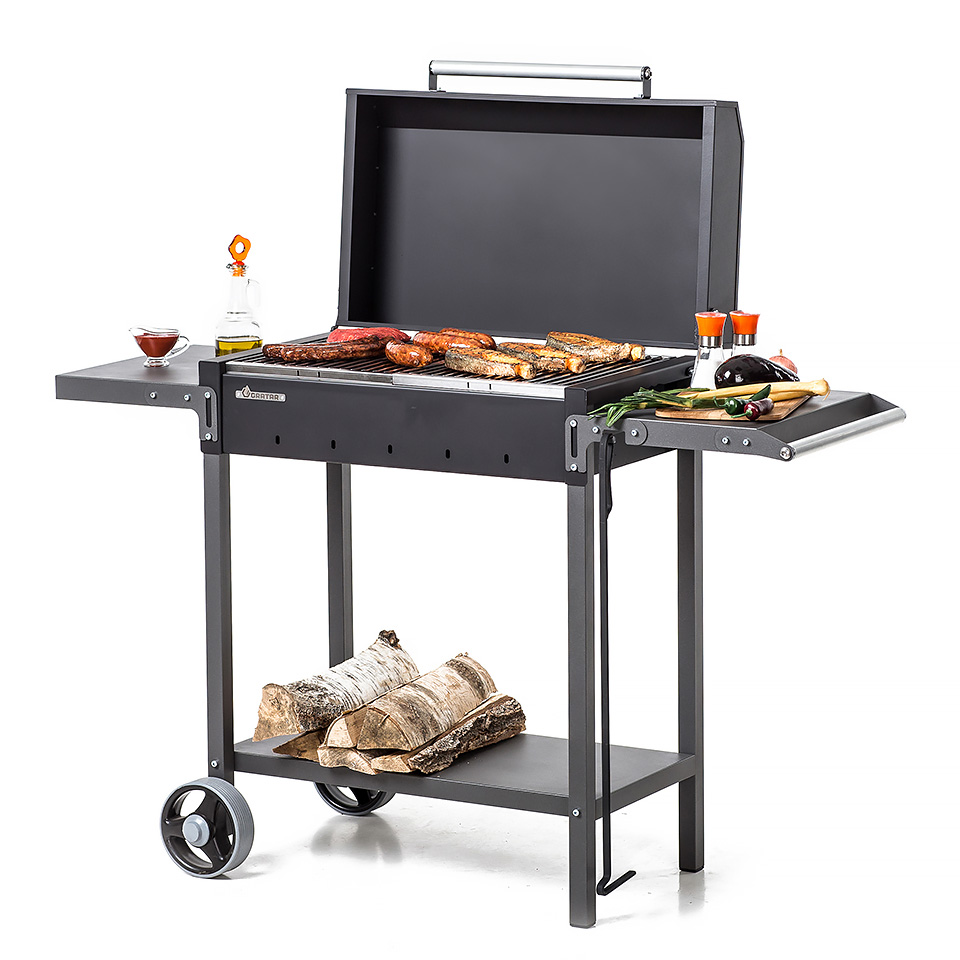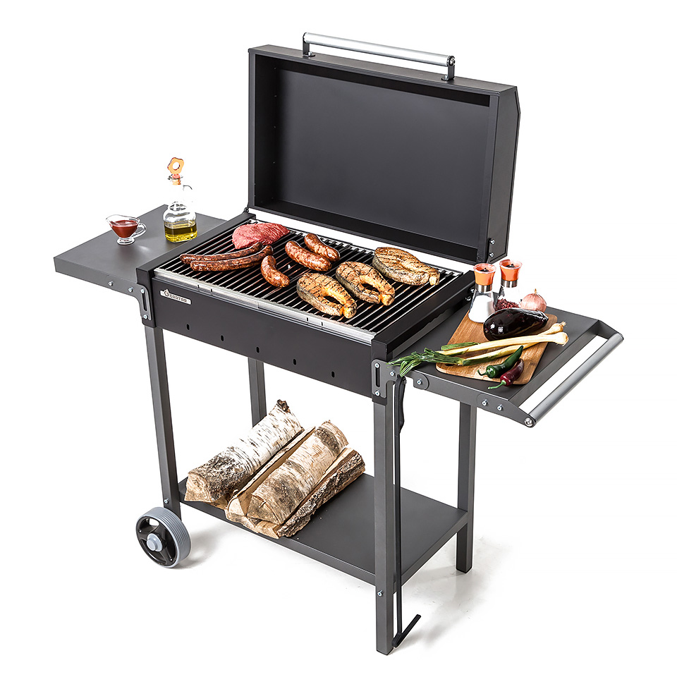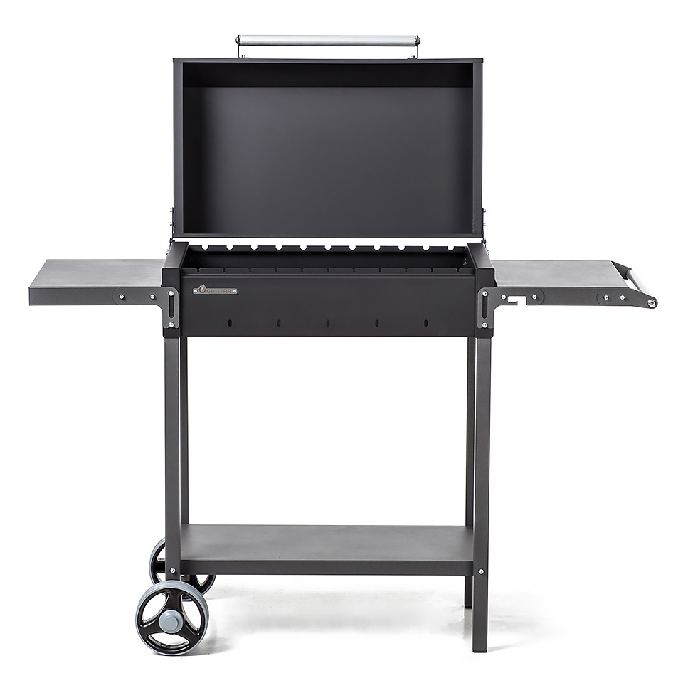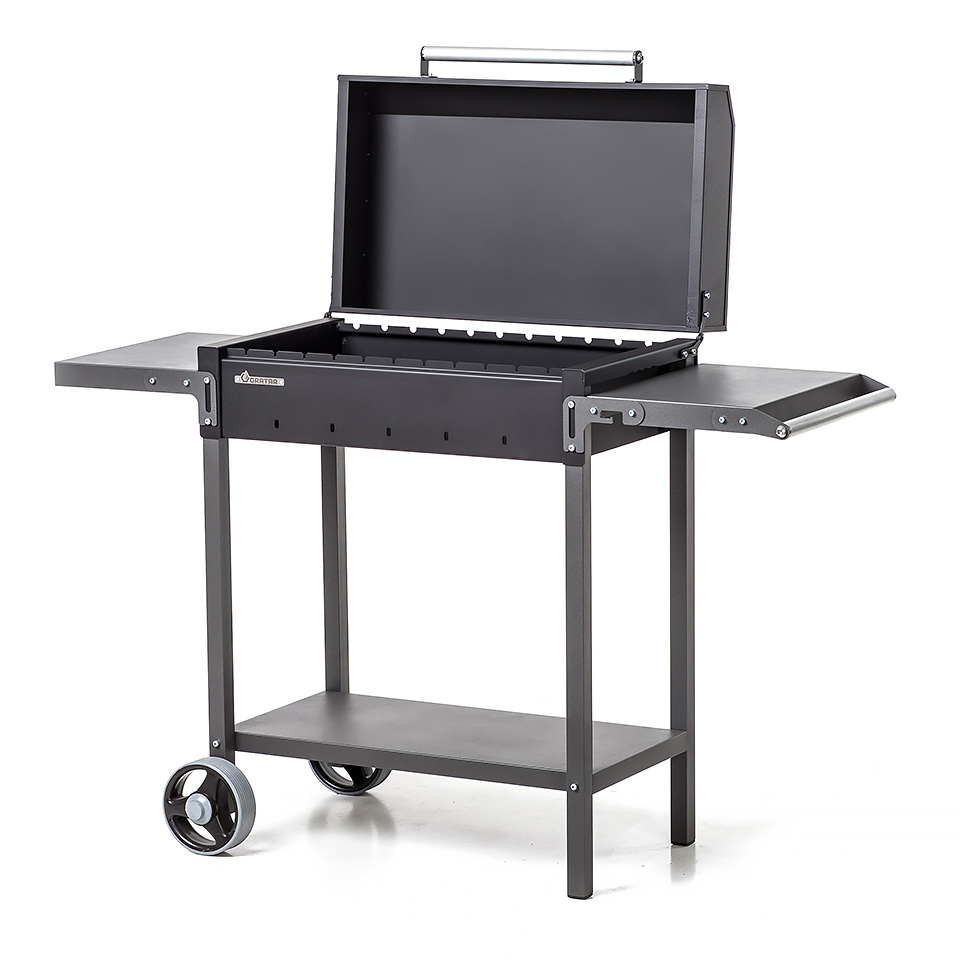 Надёжный и удобный мангал Gratar МАН 203 комплектуется крышкой барбекю, а также колёсами. Мангал выполнен из качественной стали, поэтому без проблем выдерживает дровяную растопку. В комплекте полки для размещения продуктов и инструментов.