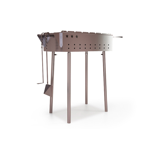 Во время поездки на дачу или загородный пикник возьмите с собой функциональный мангал Grillux Praktika B для приготовления вкуснейших шашлыков на лоне природы. Достаточно высокая конструкция, изготовленная из качественной стали, обеспечивает удобное приготовление пищи в любом месте. Толщина стенок жаровни составляет 2 мм, что позволяет длительное время полноценно использовать устройство по назначению. В жаровне предусмотрено наличие специальных отверстий, предназначенных для лучшей подачи воздуха, необходимого огню.
