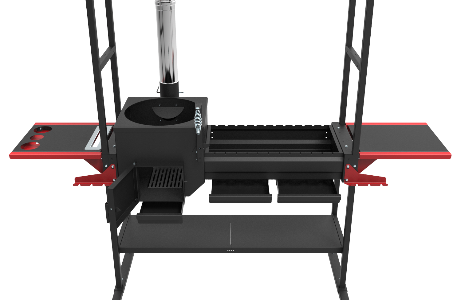 - Два независимых закрываемых поддувала с зольными ящиками;