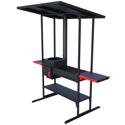 - Два боковых столика, прикрепленных к стойкам навеса;
