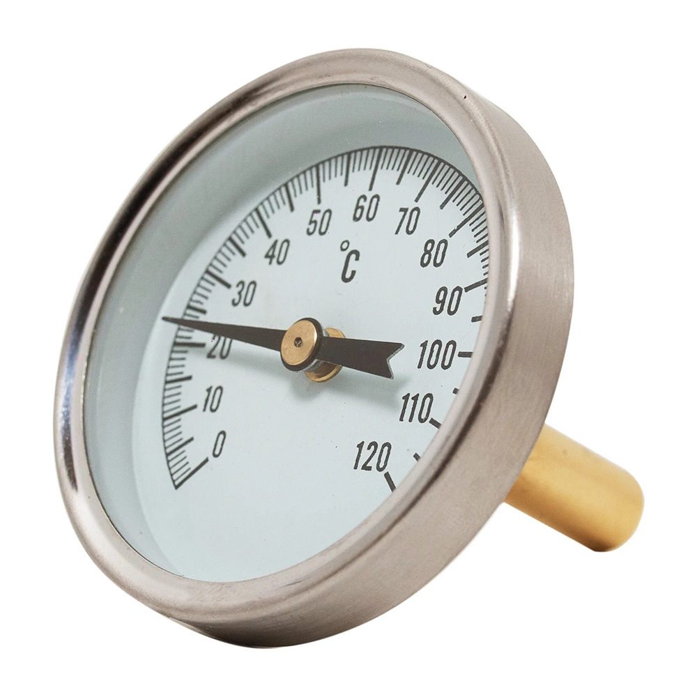 Термометр для измерения температуры жидкостей в пределах 120°С. Используется в системах отопления, горячего или холодного водоснабжения, а также в самогонных аппаратах и сусловарочных котлах. Устройство снабжено погружной линзой, изготавливается из надёжного и долговечного материала. Быстро монтируется и демонтируется.