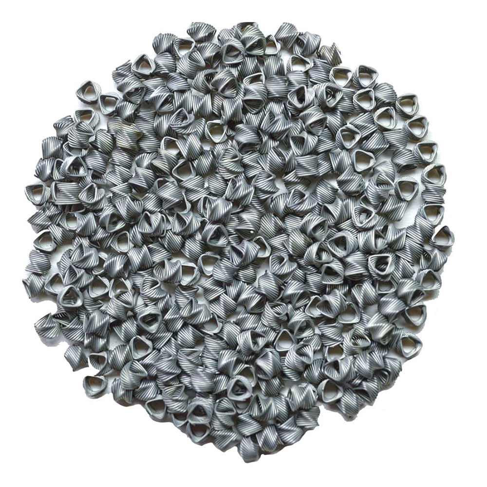 Спирально-призматическая насадка (СПН) представляет собой несколько витков спирали, повёрнутых относительно друг друга на определённый угол. Длина одного насадочного элемента составляет 3,5 мм. СПН изготавливается из высококачественной нержавеющей стали. Отличается хорошей эффективностью массообмена, низким гидравлическим сопротивлением и отличной смачиваемостью.