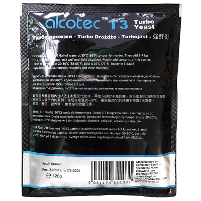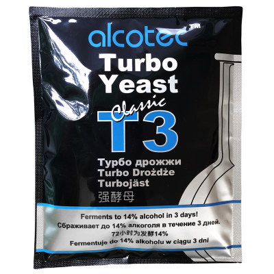 Дрожжи спиртовые Alcotec «T3 Classic» — классические и в то же время интенсивные турбо дрожжи от крупнейшего производителя дрожжей Alcotec. «T3 Classic» — это дрожжи с подкормкой, работающие эффективно и быстро, сбраживая и превращая сахара в спирт, делают брагу крепостью до 14% за 3 дня, поэтому дрожжи имеют индекс «T3» в своём названии.