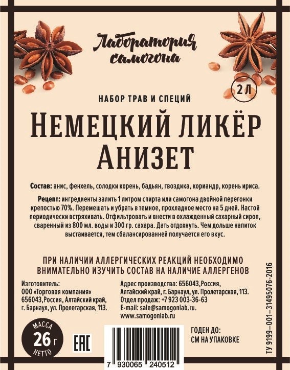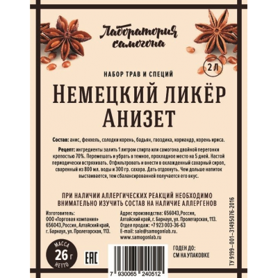 Набор "Лаборатория самогона" для приготовления немецкого ликёра "Анизет"
