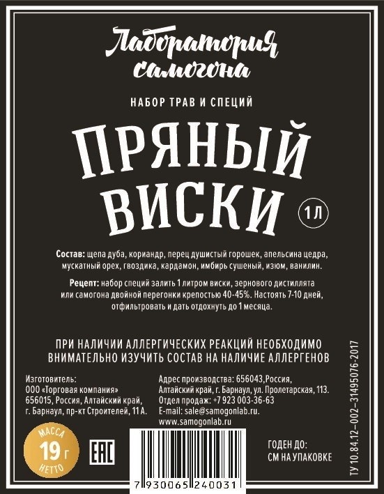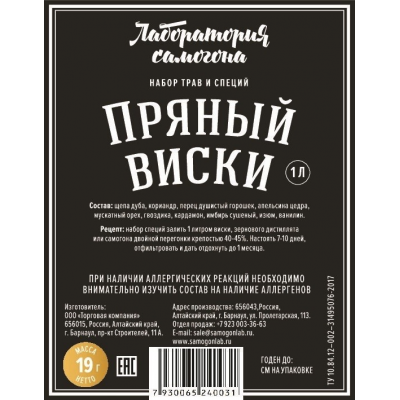 Набор "Лаборатория самогона" для приготовления дистиллята "Пряный виски"