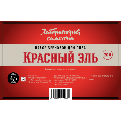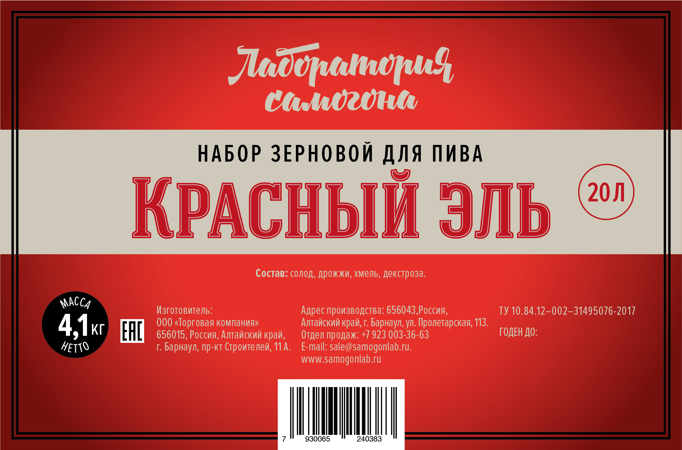 Зерновой набор "Лаборатория самогона" для приготовления пива "Красный эль"