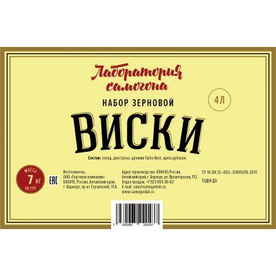 Зерновой набор "Лаборатория самогона" для приготовления дистиллята "Виски"