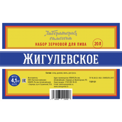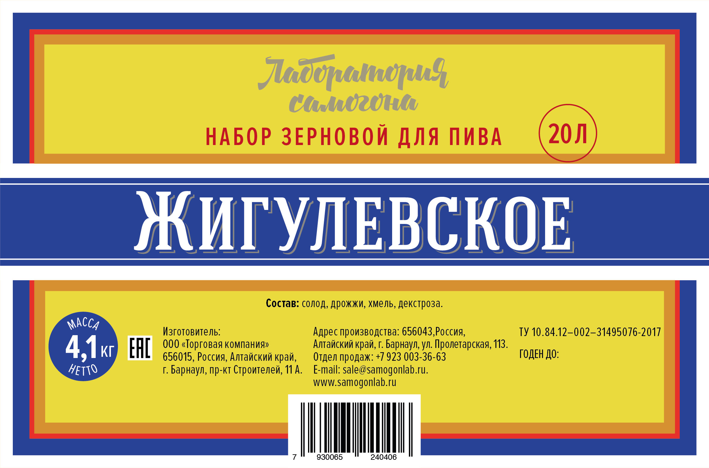 Зерновой набор "Лаборатория самогона" для приготовления пива "Жигулёвское"