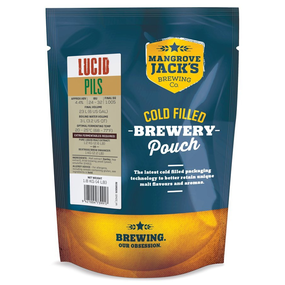 Солодовый экстракт Mangrove Jack's Lucid Pils весом 1,8 кг на 23 л домашнего пива — набор солодового концентрата с дрожжами произведенный в Великобритании. Концентрат Lucid Pils позволит создать в домашних условиях восхитительное пенное пиво золистого оттенка. Вкус пива получится плотным и с лёгким оттенком свежести. Комплект рассчитан на 23 л пива, в набор включены специальные дрожжи.