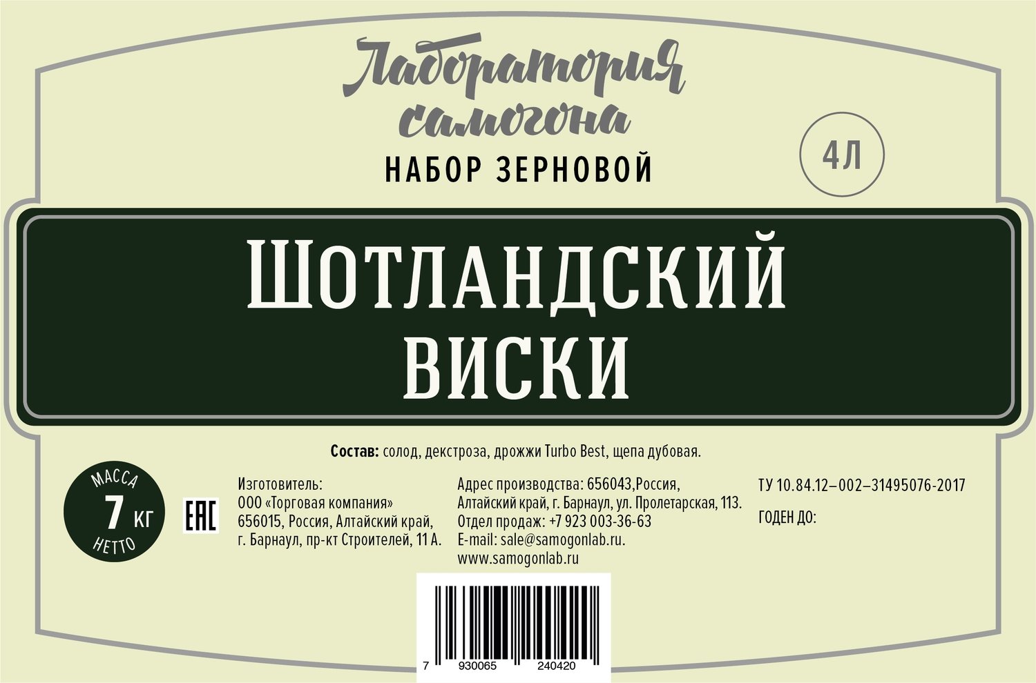 Зерновой набор "Лаборатория самогона" для приготовления дистиллята "Шотландский виски"