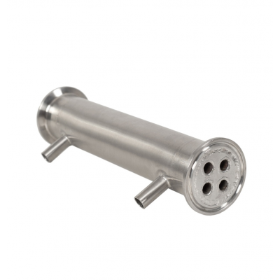 Дефлегматор имеет внутри 4 трубки, с внутренним диаметром 10 мм. Выполнен полностью из нержавеющий стали. Подойдет к любому дистиллятору, имеющему кламповые соединения 1,5". Высота дефлегматора составляет 10 см.
