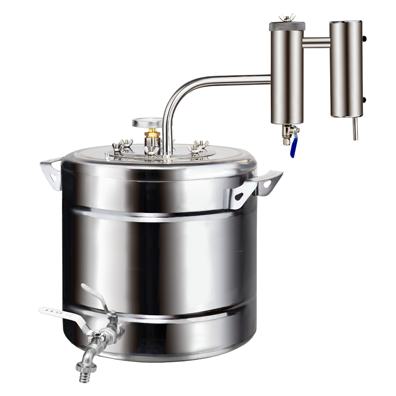 Сухопарник — ёмкость между баком и холодильником, предотвращает попадание вредных примесей в конечный продукт. Разборный сухопарник — это особенность дистиллятора «Феникс «Мечта-2», он выдаёт чистый продукт крепостью до 70%. С помощью сухопарника проводится и ароматизация напитка: положите в ёмкость кусочки фруктов, цитрусовые корки или пряности и получите авторский алкоголь с индивидуальным вкусом и ароматом. Важно соблюсти условие — наполнять резервуар только на 70%, чтобы оставалось место для спиртовых паров. Широкая горловина бака (11,7 см) даёт возможность с лёгкостью заливать брагу, а также мыть бак после использования. Классический змеевик в проточном холодильнике делает процесс конденсации пара эффективным, и на выходе Вы получаете уже охлаждённый продукт.
