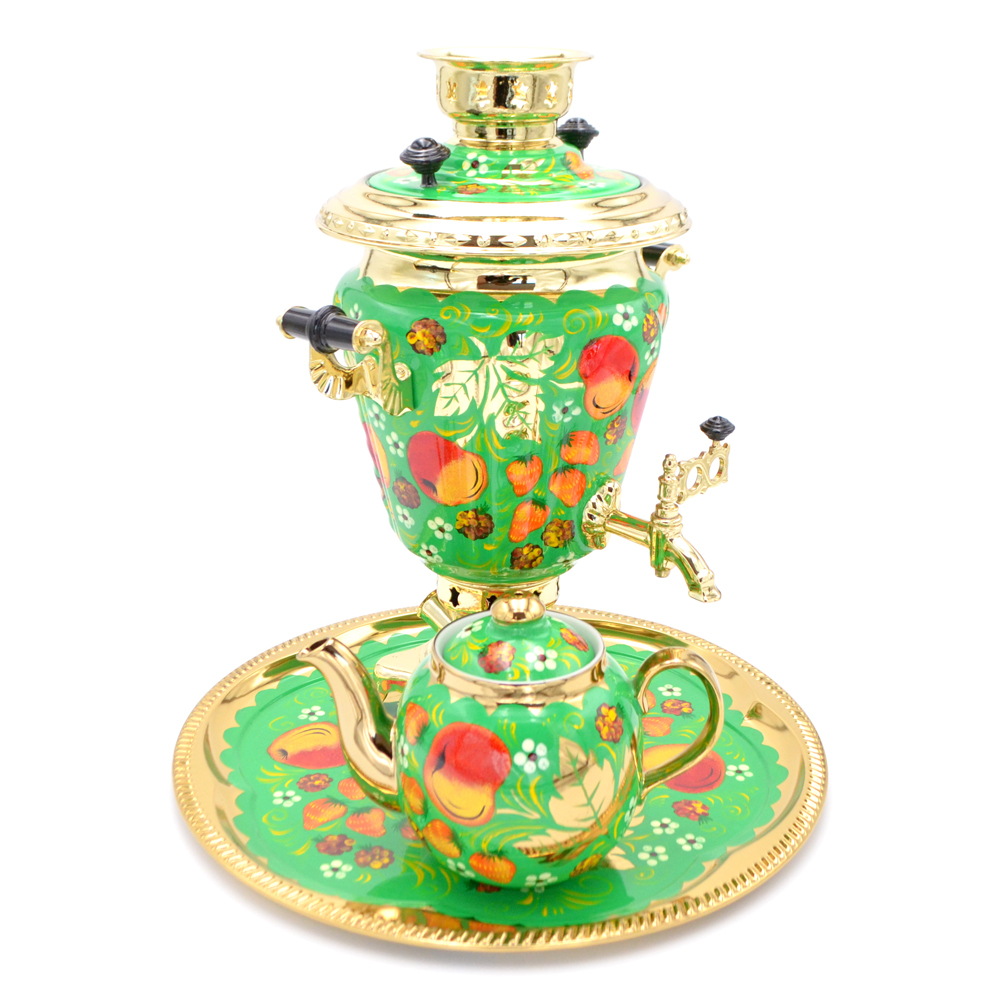 Самовар с заварочным чайником и подносом займет центральное место на столе, где будет собираться Ваша семья. Функциональный набор позволяет быстро организовать чаепитие для компании, приятные бонусы — способность долго сохранять тепло. Отличие набора «Яблоки» — наличие народного узора, отражающего русские традиции. Расписной самовар приятно дарить, особенно заграничным друзьям и гостям. Для них это будет диковинно и позволит прикоснуться к русской культуре. Такой подарок никого не оставит равнодушным и идеально подойдет для любого события. Полезно приобрести такой самовар и для своего дома, это станет началом традиции долгих семейных чаепитий.