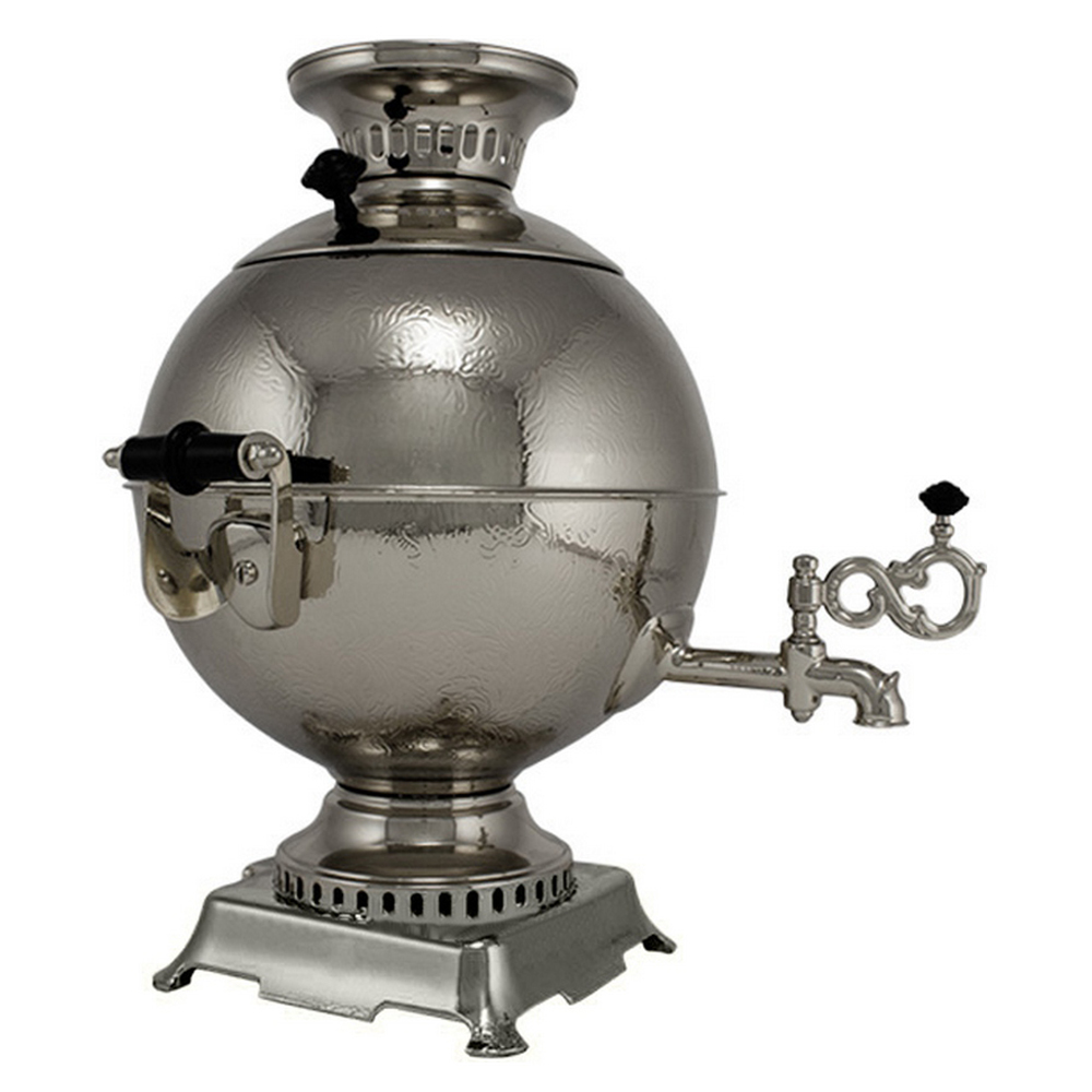 Завораживающий серебряно-зеркальный блеск, оригинальная сферовидная форма, интересная фактура и ажурные элементы — это электрический самовар «Шар» 5 л никелированный. Красавец изготовлен руками искусных мастеров на современном тульском заводе методом холодной штамповки. Несмотря на самобытный дизайн, самовар обладает наилучшими характеристиками современного изделия.