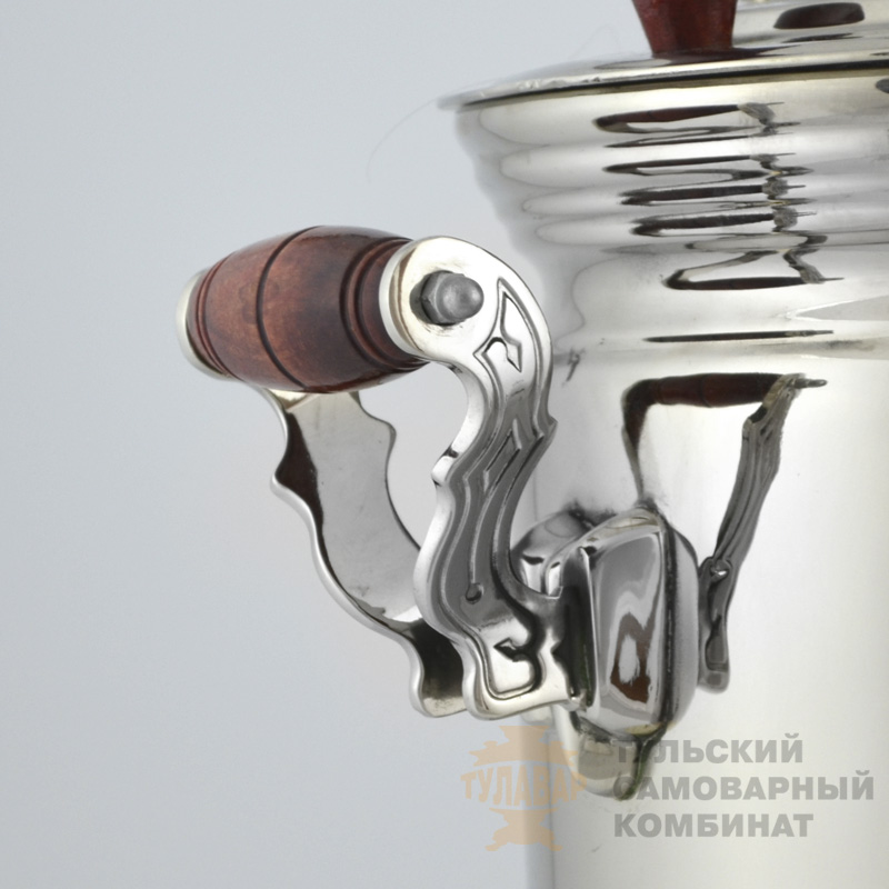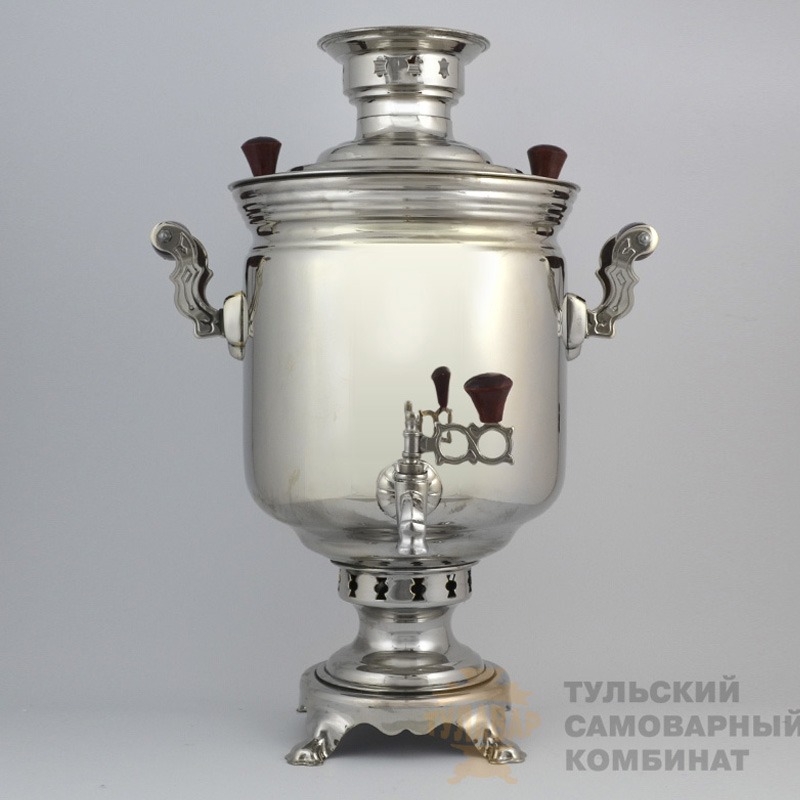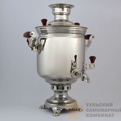 Простота и лаконичность этой модели подчеркивает прямое назначение. Такой самовар сложно оставить красоваться в углу, им хочется пользоваться. Вместительный объем позволяет собрать за столом большую компанию и насладиться ароматным чаем. Ведь самовар, работающий на углях — это не только приятные хлопоты, но и интересное развлечение. Дразнящий запах дымка и незабываемый вкус настоящего самоварного чая — то, чем всегда можно поразить самых искушенных гостей.