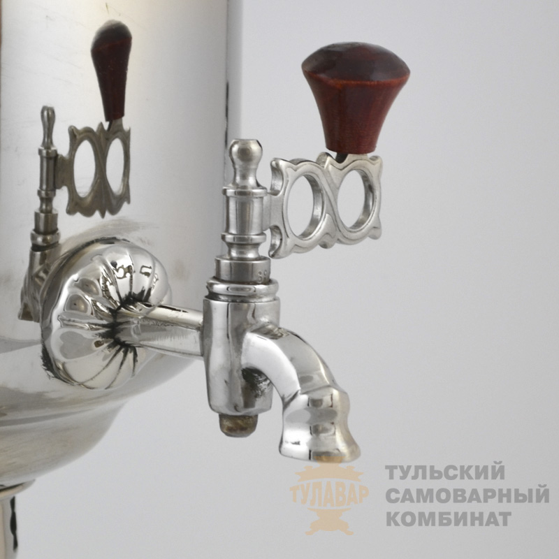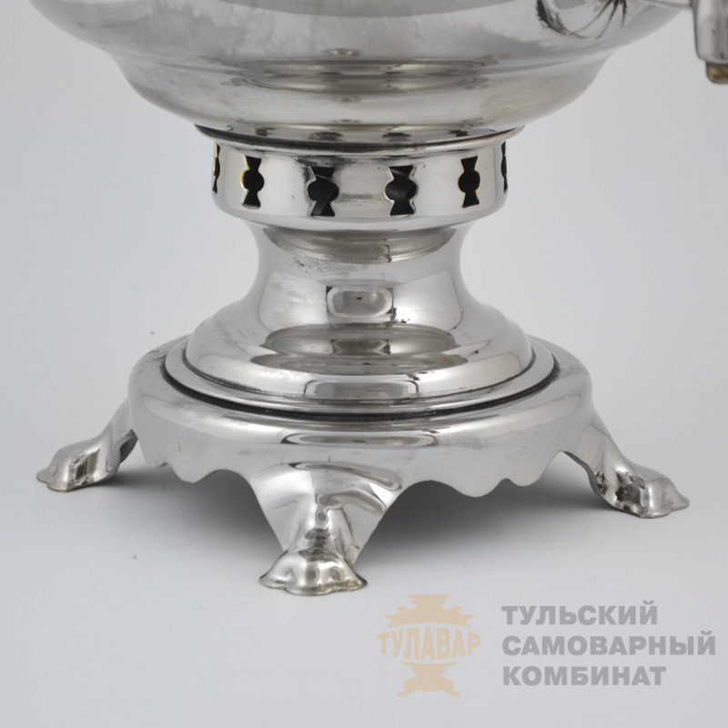 Самовар жаровый «Банка» никелированный формы банка — создан в русских классических традициях. Объема 7 л достаточно даже для больших компаний от 4 – 10 человек, истинных почитателей древнейших русских традиций чаепития.