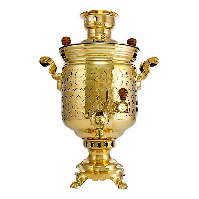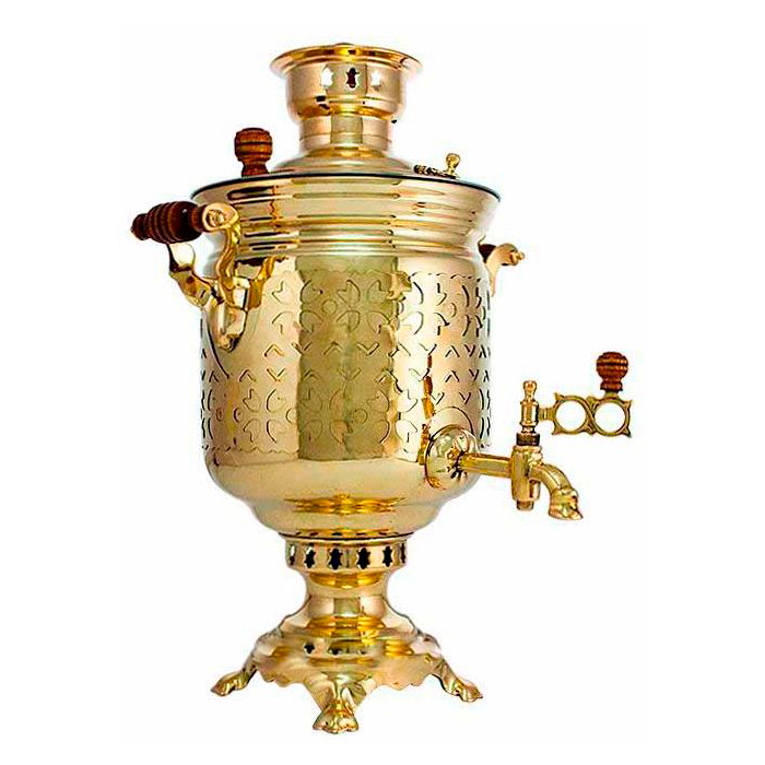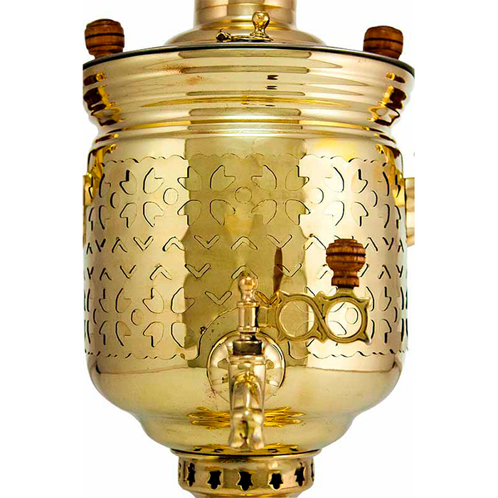 Самовары в форме банки издревле использовали наши предки. Они знали толк в чайном искусстве, передавая из поколения в поколение секреты приготовления ароматного напитка. И сегодня любители чайных церемоний охотно заказывают эти небольшие, но функциональные приборы. Достаточно взглянуть на свое отражение в гладкой латунной поверхности корпуса — и праздничное настроение обеспечено. Внешне самовар достаточно прост в исполнении и лаконичен, и в этом есть своя прелесть. Смотрится такой прибор солидно, и может претендовать на роль главного аксессуара на любом застолье. Пузатый бочонок украшен фурнитурой из массива бука, что придает ему особое очарование.