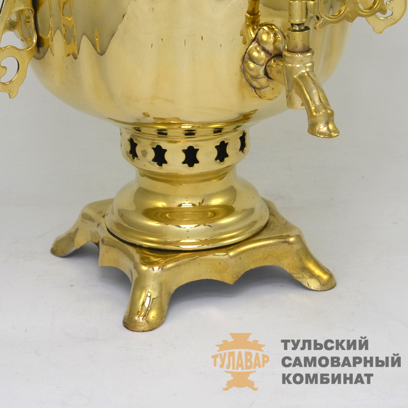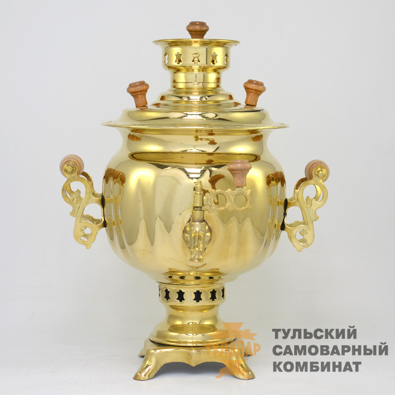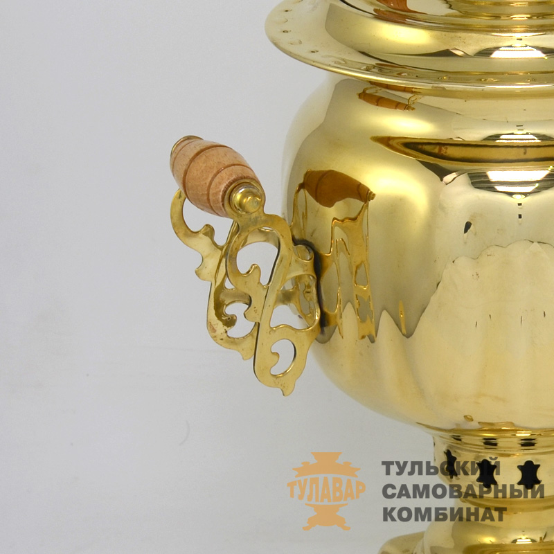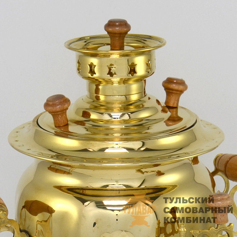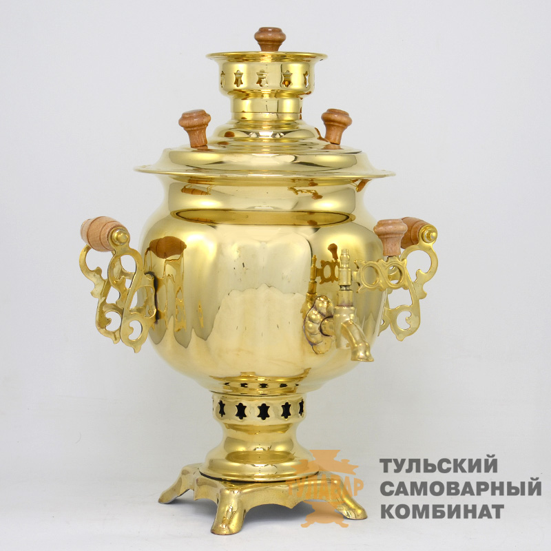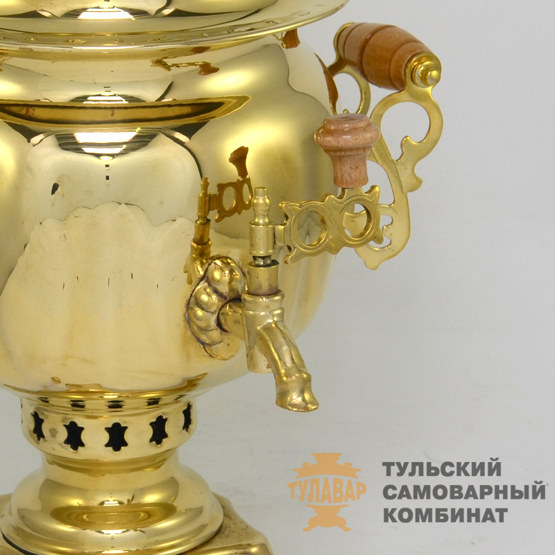 Этот самовар станет отличным дополнением любого чаепития на природе. Все, что нужно для его работы — немного огня, сосновые шишки, щепа или древесный уголь. После розжига пройдет всего 10-15 минут, и можно наслаждаться душевным чаепитием. Толстые латунные стенки будут долго держать тепло, а чай наполнится ни с чем не сравнимыми приятными дымными нотками. Латунь — очень качественный материал, устойчивый повреждениям и коррозии. Внутри самовар отделан пищевым оловом.