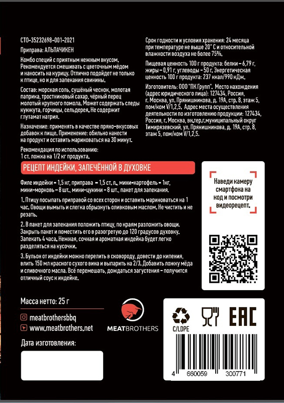 Приправа для курицы "Альпа Чикен" Meatbrothers, саше 25 г