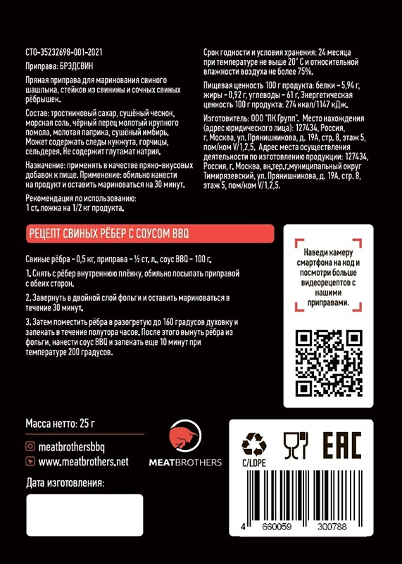 Приправа для свинины "Брэд Свин" Meatbrothers, саше 25 г