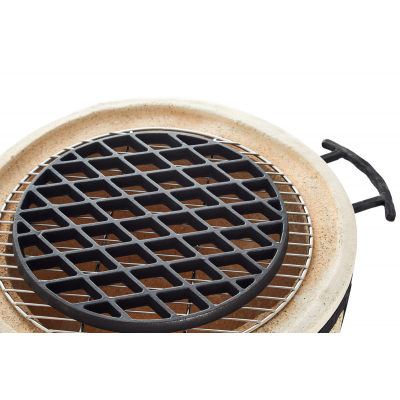 - Универсальность – решётка является достаточно простым и удобным приспособлением. Можно использовать решётку на почти любой модели тандыра, жаровне, костровнице, гриле, в духовке… и даже на охоте или рыбалке на костровой подставке с чугунной решёткой можно не только пожарить мясо и рыбу, но и удобно вскипятить чайник и приготовить любое блюдо в котелке;