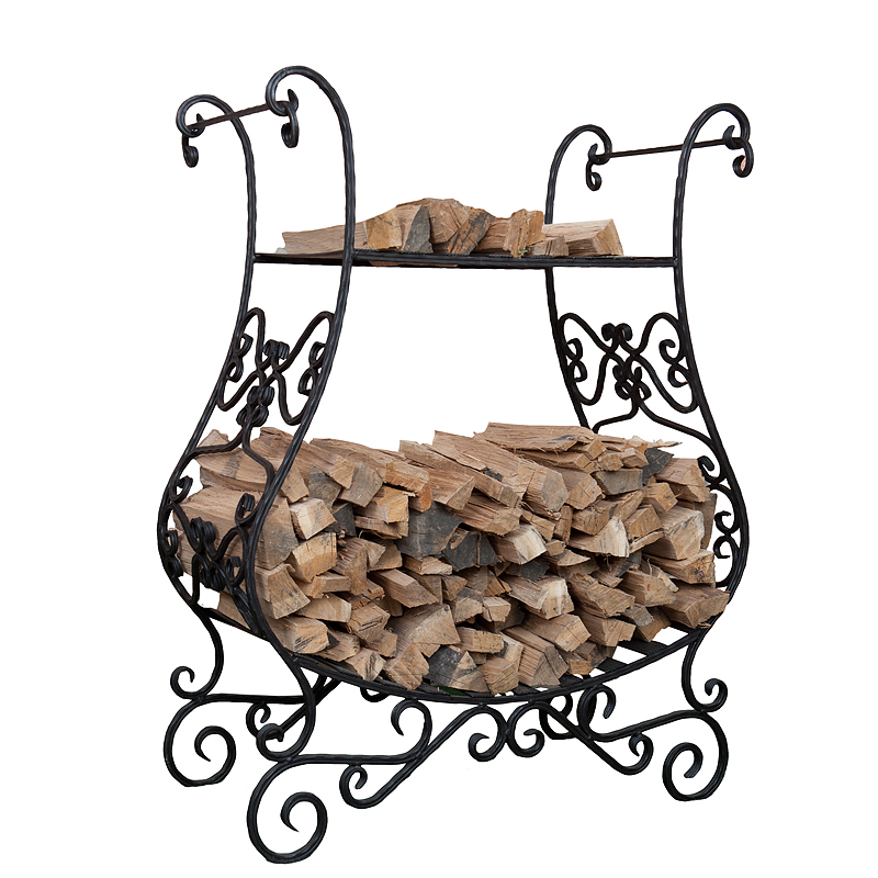 Установите дровницу вдоль стены или забора и она не будет мешать или занимать много свободного пространства. Кованая основа гарантирует прочность и долговечность эксплуатации. Благодаря ножкам, древесное топливо не будет впитывать влагу с земли, а декор из завитков и металлических спиралей обратит на себя внимание гостей Вашего участка.