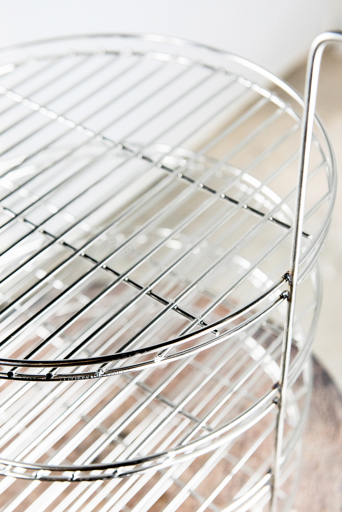 Этажерка способна выдержать большие куски мяса или несколько килограммов овощей. Прослужит гораздо дольше, чем обычная этажерка. Данный аксессуар прекрасно заменит шампуры! Положите нарезанные овощи на верхний ярус, а мясо или рыбу на нижние, и через несколько минут новое блюдо готово!