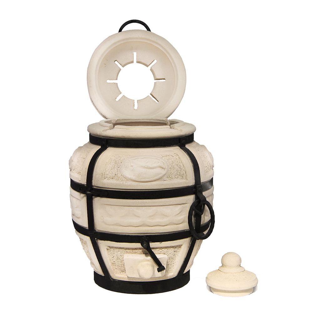 Очень изящный тандыр небольшого размера. Тем не менее, в нём можно запросто приготовить шашлык на всю семью или небольшую дружную компанию. Тандыр "Амфора-Охотник" также годится для приготовления относительно крупных блюд, которые не жарятся на шампурах, а тушатся в нижней его части, как например — мясо кролика, или небольшие птицы целиком. Относительно небольшой вес тандыра и удобные кованые ручки позволяют легко транспортировать его на любые расстояния и использовать не только на ограниченном заборами соседей участке, но и выезжать с ним на природу на пикник. Тандыр оснащён удобным механизмом открывания крышки, который значительно облегчает работу с тандыром, а также экономит Ваше рабочее место на столе.