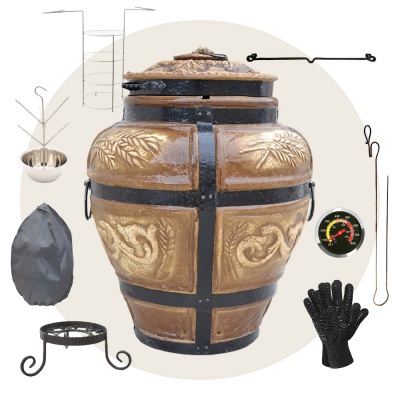 При покупке комплекта тандыр "Барельеф-Колос" в нашем магазине Вы экономите 2 935 рублей. Комплект включает в себя самые необходимые аксессуары допустимые к данной модели тандыра. Доставка по Санкт-Петербургу — бесплатно!