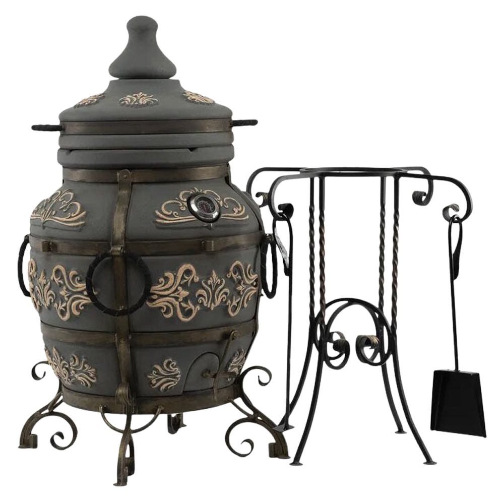 Всё самое лучшее, что пожелали требовательные гурманы, компания "ЭКОтандыр" воплотила в тандыре "Гранд". Сам корпус тандыра сделан в классической форме кувшина, при этом горловина тандыра "ЭКОтандыр-Гранд" достигает внушительных 30 см. Большая крышка тандыра имеет удобную подставку. В толстостенном корпусе тандыра установлен большой наглядный термометр, и у хозяев этого тандыра никогда не будет сомнений относительно правильной температуры приготовления многочисленных блюд. Четыре ручки на корпусе для переноски тандыра тоже подчеркивают уверенность и основательность тандыра "ЭКОтандыр-Гранд". В комплекте 16 шампуров со специальными зажимами, для того чтобы обладатель тандыра всегда имел возможность готовить много и вкусно. Большой тандыр "ЭКОтандыр-Гранд" и этим всё сказано.
