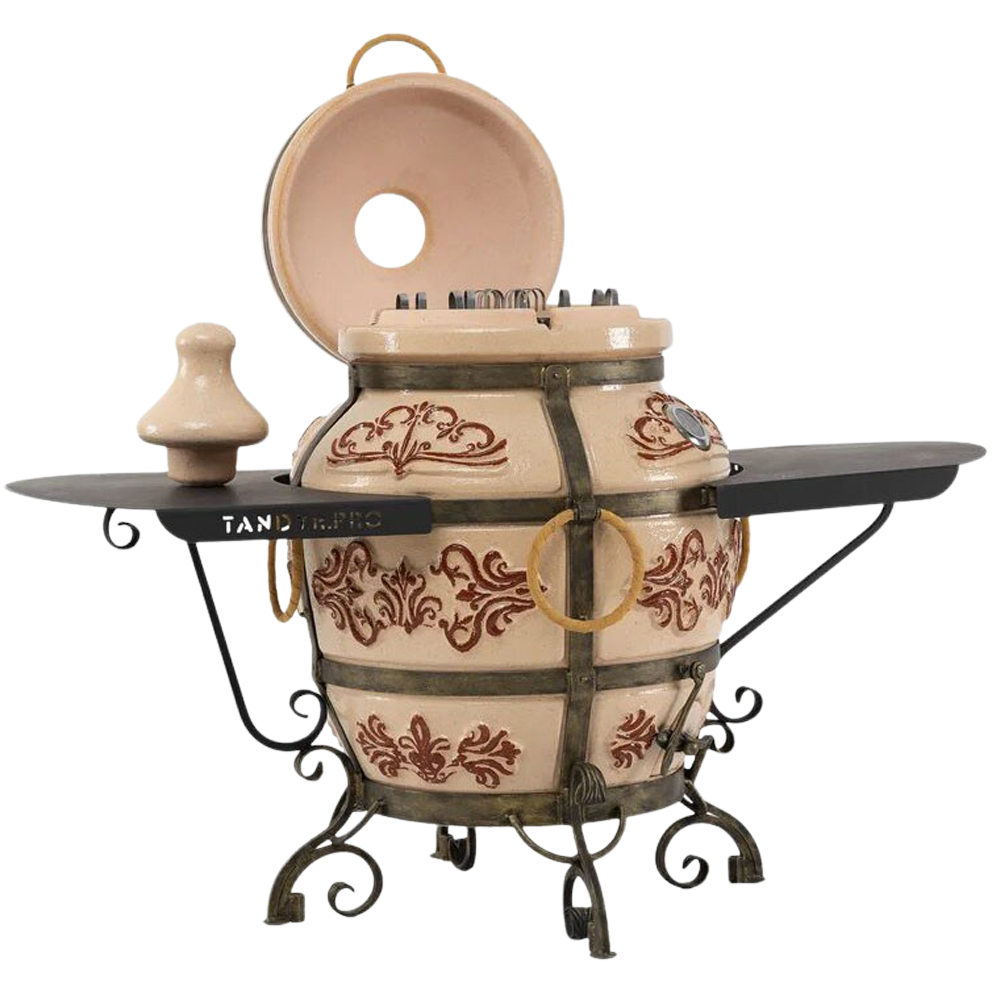 Комплект тандыр "ЭКОтандыр-Гранд" с откидной крышкой и двумя столиками, слоновая кость