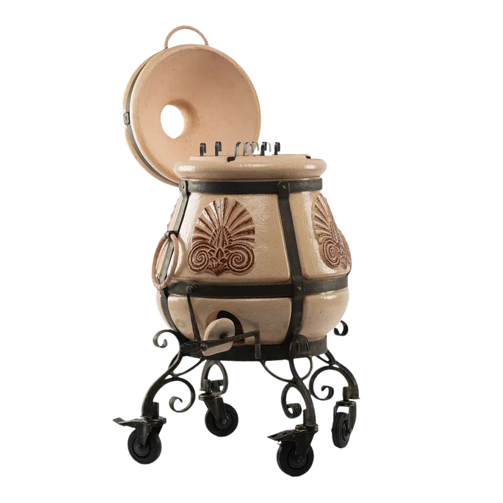 Комплект тандыр "ЭКОтандыр-Греческий" с откидной крышкой, на колёсах, слоновая кость