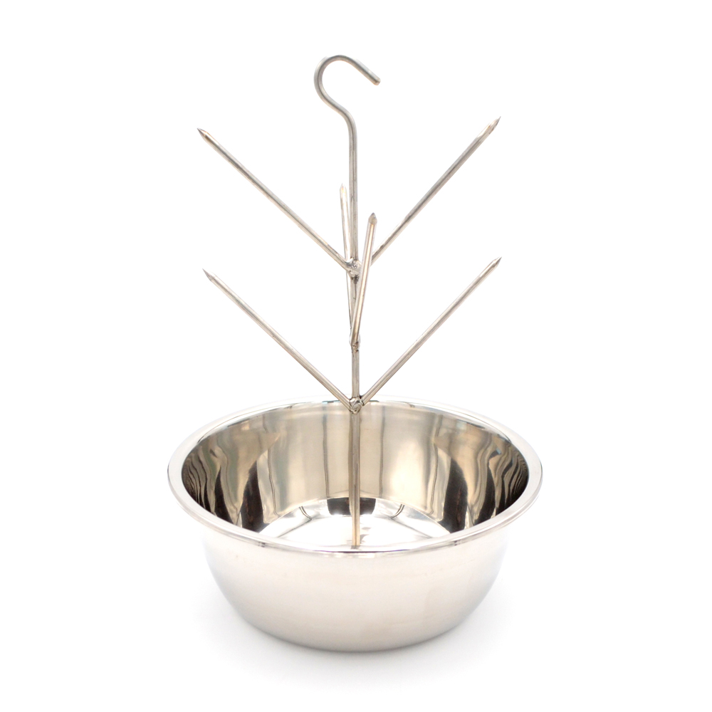 Ёлочка имеет крюк для крепления к тандыру, 6 заострённых шипов и миску для сбора жира/сока, а также для приготовления жидких блюд. Конструкция позволяет готовить любые продукты, не опасаясь, что они могут соскользнуть и упасть на угли.