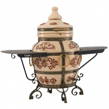 Тандыр "ЭКОтандыр-Гранд" с откидной крышкой и двумя столиками, слоновая кость