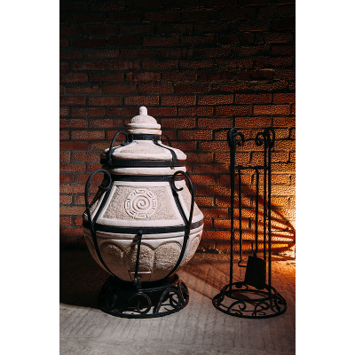Тандыр "Амфора-Аладдин-mini" изготовлен из традиционной шамотной глины, толщина стенок составляет 5 см, что позволяет изделию долго держать тепло, широкий диаметр горла позволяет с лёгкостью готовить вкуснейшие лепёшки (лаваш), самсу и прочие блюда из теста в объёмах более чем достаточных даже для больших компаний любителей вкусно поесть.