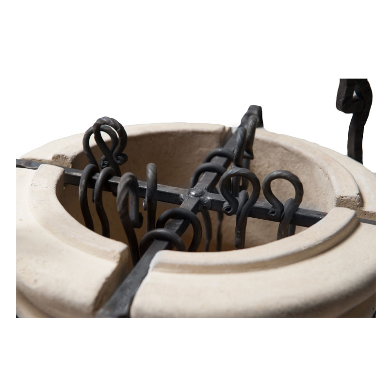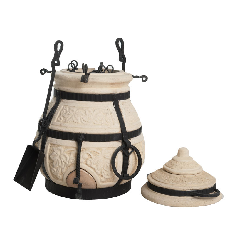 Одновременное приготовление на 8 шампурах — это отличная альтернатива мангалу со всеми преимуществами, присущими тандыру: вкуснейший шашлык, меньшее время приготовления, равномерность прожарки, отсутствие необходимости подкручивать шампуры во время приготовления. Изящный корпус маленького тандыра радует глаз, запахи пробуждают аппетит, а приготовленное в нем мясо — это гастрономическое счастье для всей семьи или компании. Идеален для переносного использования: малый вес тандыра и удобные кованые ручки позволяют легко транспортировать его на любые расстояния в машине.